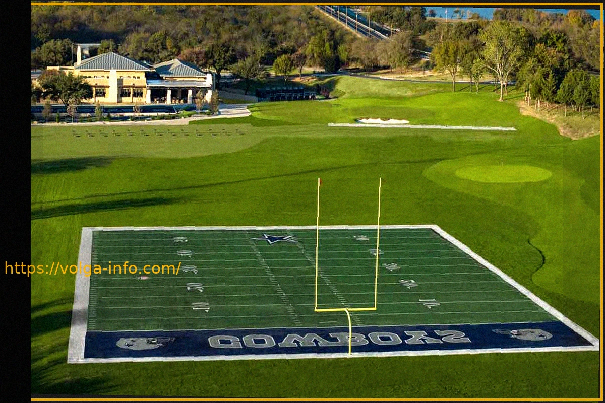 Самая впечатляющая отсылка к команде Dallas Cowboys в гольф-клубе Dallas Cowboys – это обширные участки подлинного игрового газона, вшитые прямо в тренировочную площадку. Это создает поистине выдающуюся и уникальную атмосферу для тренировок.