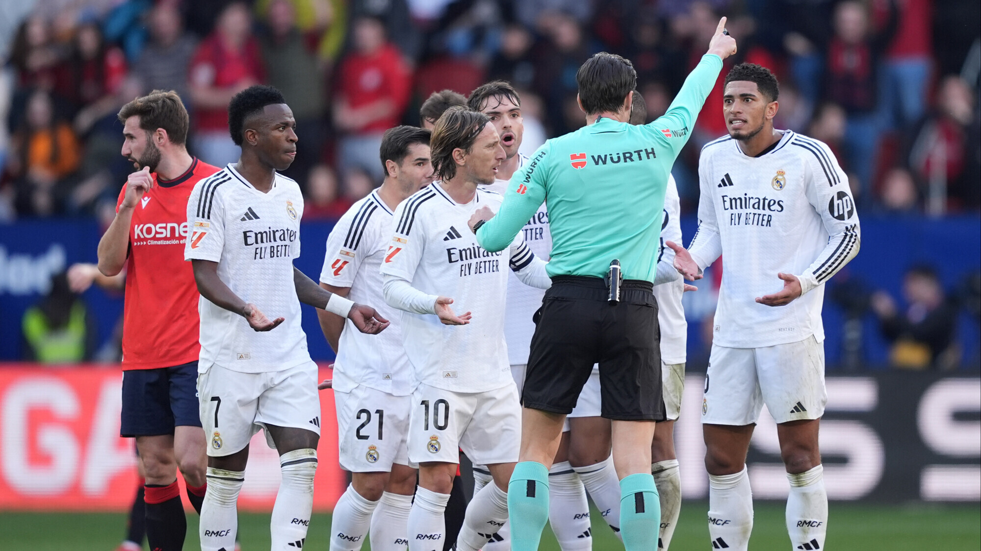 В матче “Реал Мадрид” – “Осасуна”, завершившемся вничью 1:1, произошел неприятный инцидент. На 39-й минуте полузащитник мадридцев Джуд Беллингем получил прямую красную карточку за оскорбление судьи. После назначения штрафного удара в пользу “Осасуны” английский футболист выкрикнул нецензурное выражение в сторону рефери Хосе Луиса Мунуэры, за что немедленно был удален с поля.
